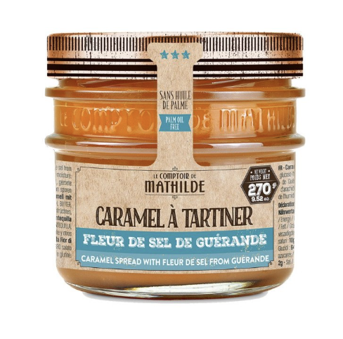 Zutaten : Glukose-Fruktose-Sirup, Zucker, SAHNE, gezuckerte KondensMILCH, BUTTER, Wasser, 0,9% gesalzene BUTTER mit Fleur de Sel aus Guérande, Guérande-Salz, Stabilisator: Pektin.