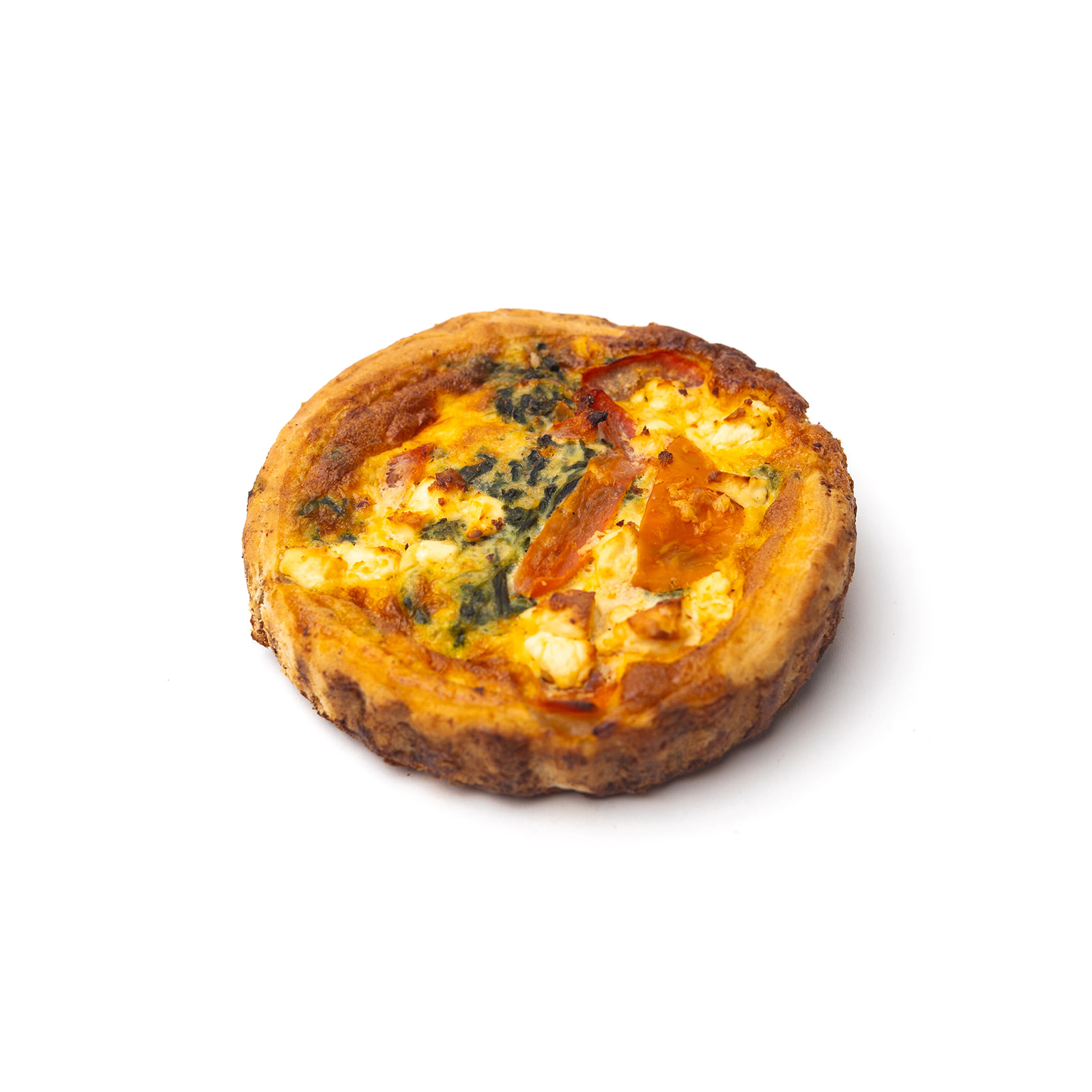 Quiche enthält Feta-Käse, Spinat und Tomaten
