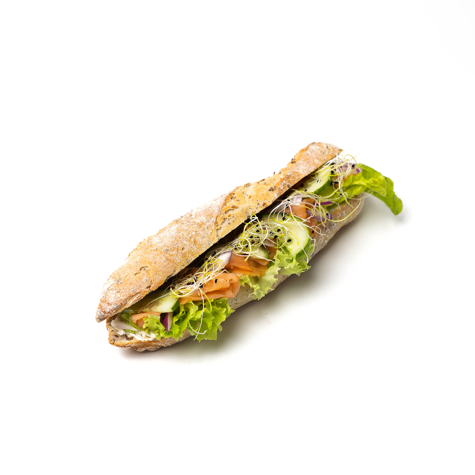 mit geräuchertem Lachs, Frischkäse, Salat und Zwiebeln auf Salatbouquet